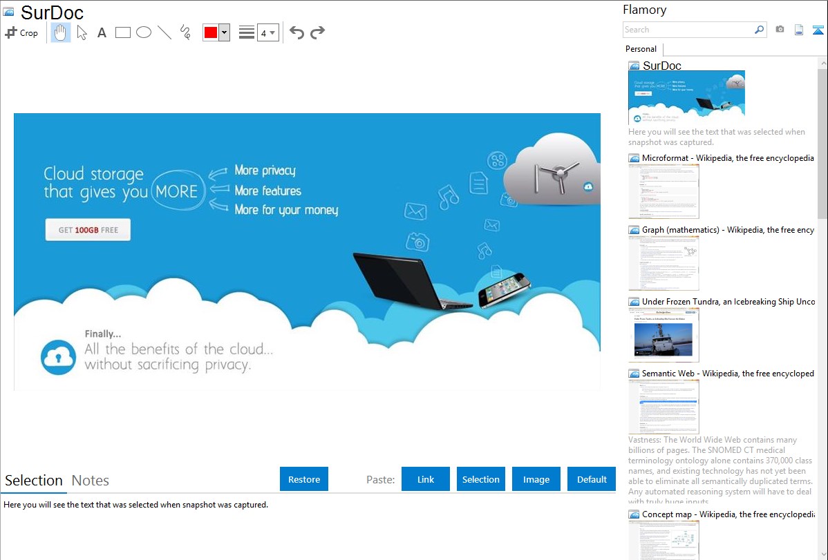 Flamory helps you capture and store screenshots from SurDoc by pressing a single hotkey. It will be saved to a history, so you can continue doing your tasks without interruptions. Later, you can edit the screenshot: crop, resize, add labels and highlights. After that, you can paste the screenshot into any other document or e-mail message.