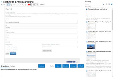 Flamory provides advanced bookmarking for Technetto Email Marketing. It captures screen, selection, text on the page and other context. You can find this bookmark later using search by page content or looking through thumbnail list.
