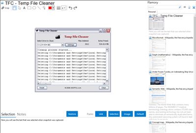 Flamory helps you capture and store screenshots from TFC - Temp File Cleaner by pressing a single hotkey. It will be saved to a history, so you can continue doing your tasks without interruptions. Later, you can edit the screenshot: crop, resize, add labels and highlights. After that, you can paste the screenshot into any other document or e-mail message.