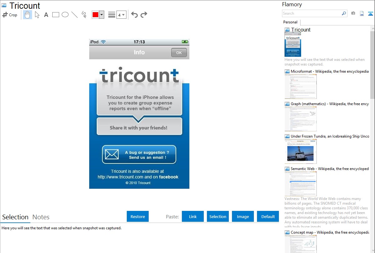 Flamory helps you capture and store screenshots from Tricount by pressing a single hotkey. It will be saved to a history, so you can continue doing your tasks without interruptions. Later, you can edit the screenshot: crop, resize, add labels and highlights. After that, you can paste the screenshot into any other document or e-mail message.