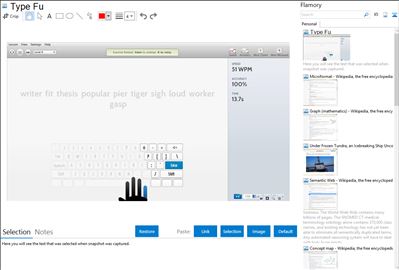 Flamory helps you capture and store screenshots from Type Fu by pressing a single hotkey. It will be saved to a history, so you can continue doing your tasks without interruptions. Later, you can edit the screenshot: crop, resize, add labels and highlights. After that, you can paste the screenshot into any other document or e-mail message.