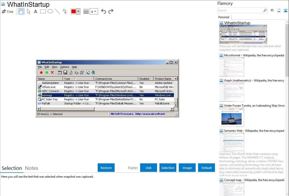 Flamory helps you capture and store screenshots from WhatInStartup by pressing a single hotkey. It will be saved to a history, so you can continue doing your tasks without interruptions. Later, you can edit the screenshot: crop, resize, add labels and highlights. After that, you can paste the screenshot into any other document or e-mail message.